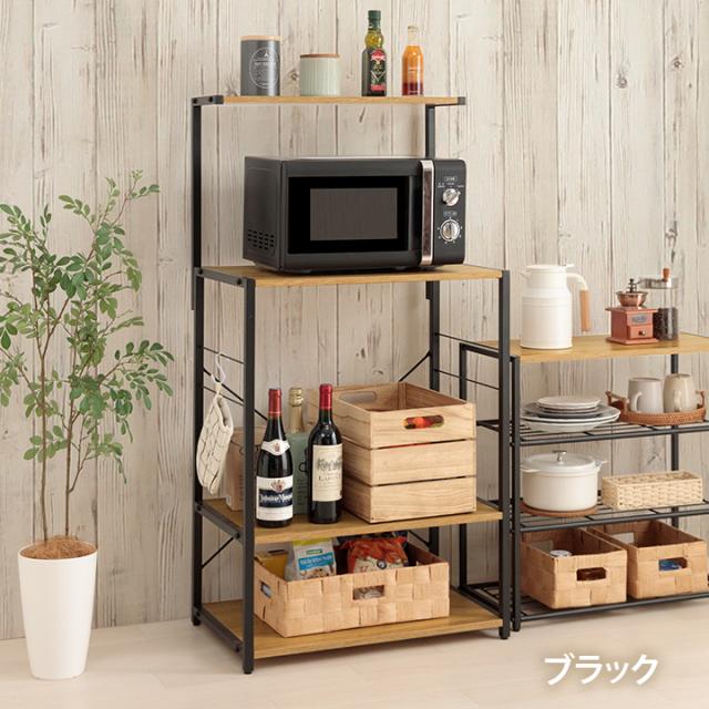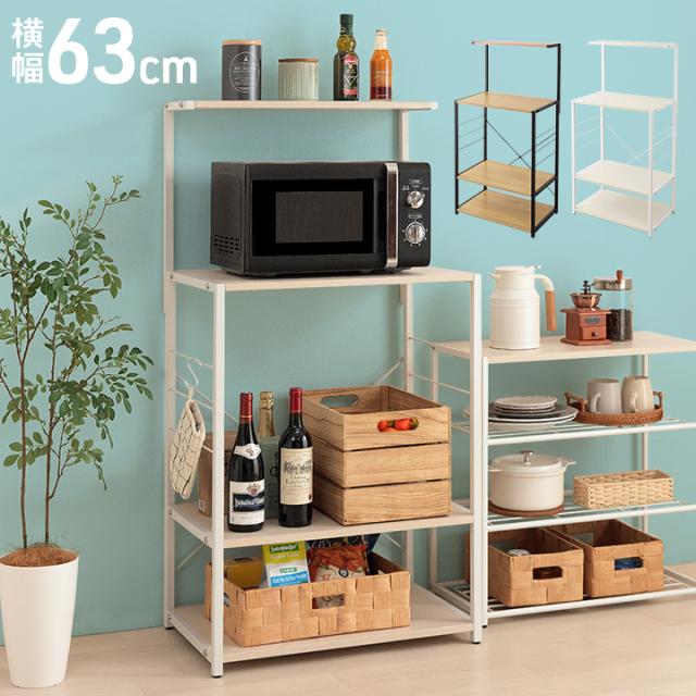 レンジ台 レンジラック キッチンラック 幅63 レンジボード キッチン 収納 収納棚 「 スチーラ 」 キッチンシェルフ ビンテージ オープンラック 棚 シェルフ 一人暮らし 家具 新生活 ホワイト ブラック お洒落 軽量