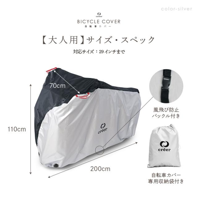 - 早くの対応で、包装もしっかりしてました。大人用の自転車に丁度良くカバーもしやすくベルトが付いているので風にも飛ばされないかと思います。