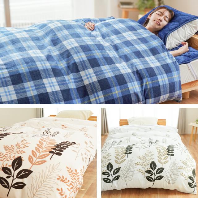 【11/11〜売り切り価格!】あったか 掛け布団カバー 冬用 シングル 「arte アルテ」 マイクロフリース 毛布にもなる 布団カバー 冬 枕パッド セットも選べる シングルロング 150×210cm スナップボタン 当社限定品 かわいい 暖か 冬 リーフ チェック 節電【attktk】