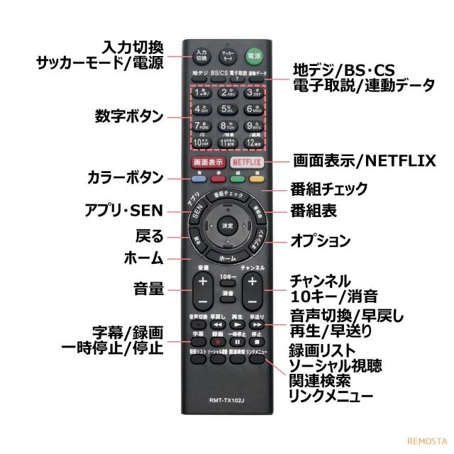 ソニー テレビ リモコン ブラビア RMT-TX102J SONY BRAVIA 代用リモコン