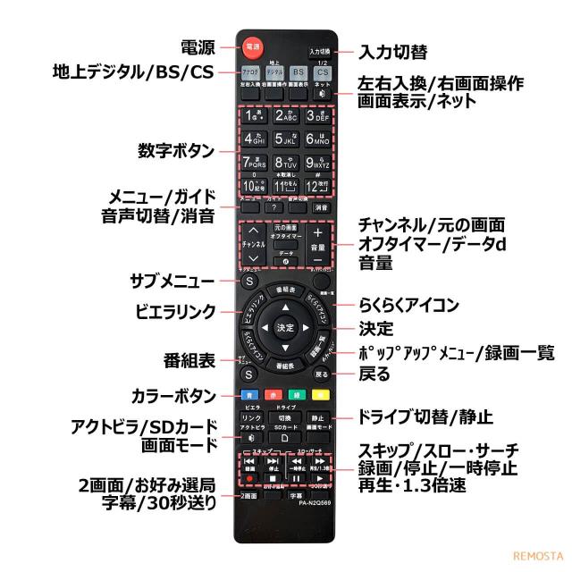 対応リモコン:N2QAYB000569 N2QAYB000588 N2QAYB000537 N2QAYB000545