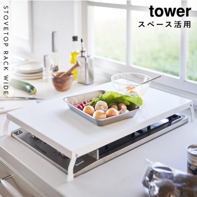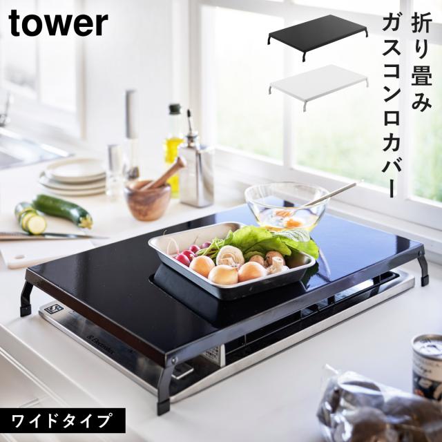 折り畳みガスコンロカバー ワイド タワー 山崎実業 tower ガスコンロ カバー 作業台 ガスコンロカバー コンロ上 おしゃれ モノトーン ホワイト ブラック 4922 4923