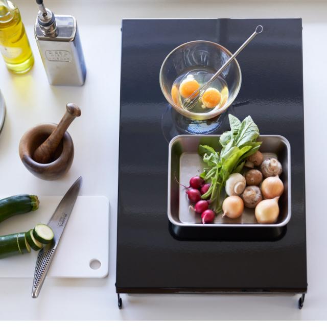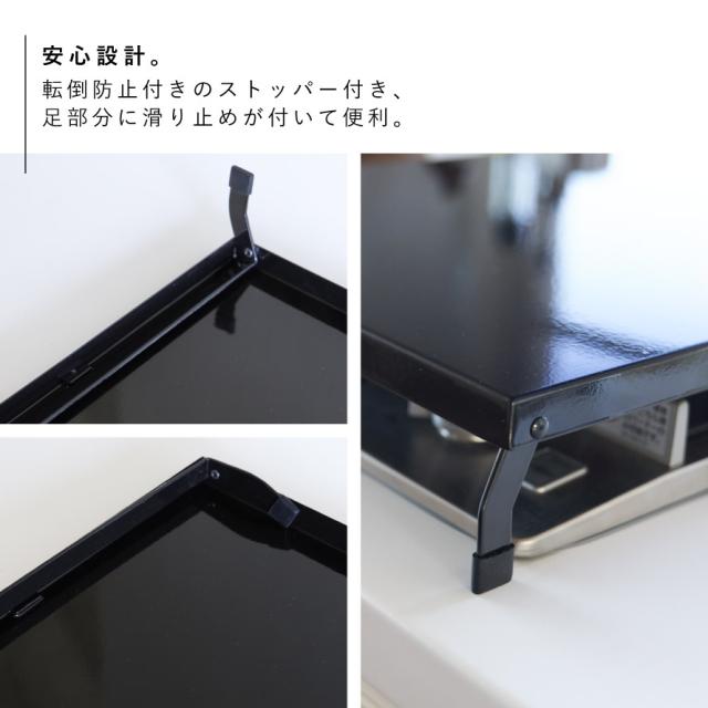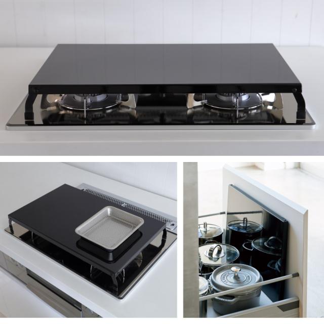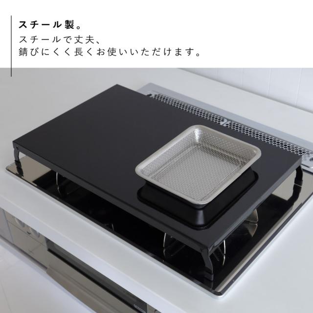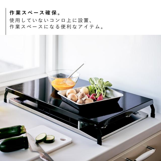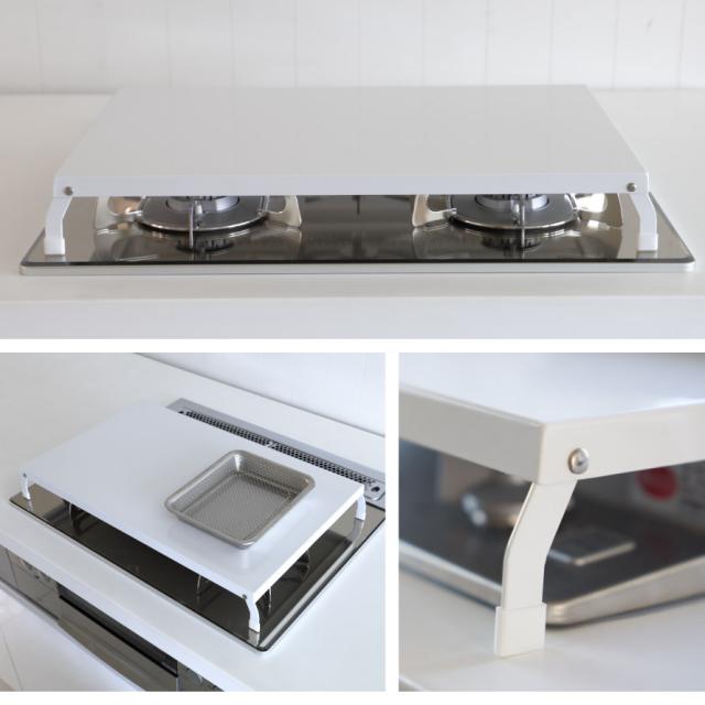 使用していないガスコンロの上が収納&作業スペースに早変わり。ビルトインガスコンロや据え置きタイプのガスコンロなど、使用していないコンロ上に設置。作業スペースになる便利なアイテム。