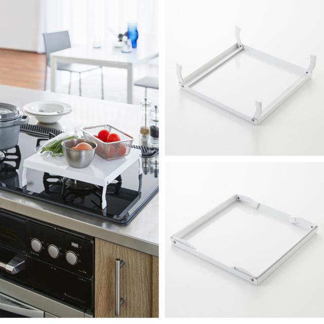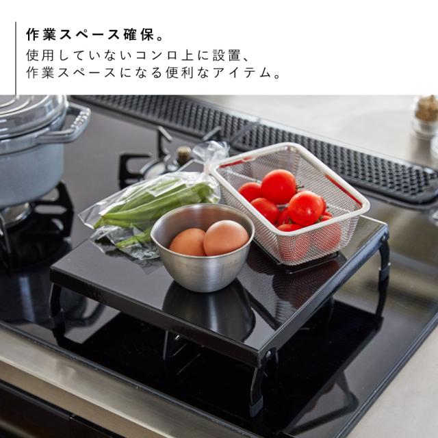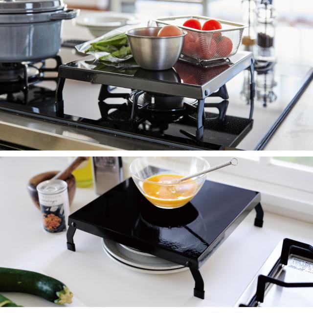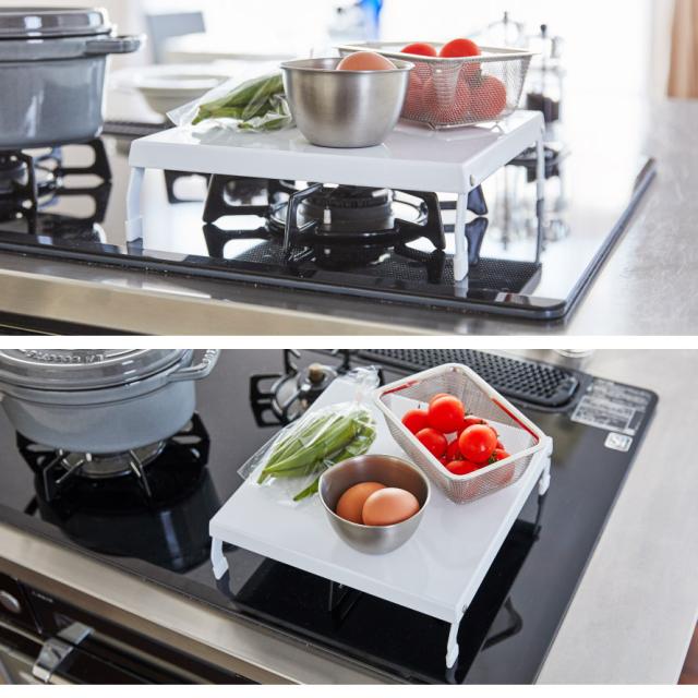 使用していないガスコンロの上が収納&作業スペースに早変わり。ビルトインガスコンロや据え置きタイプのガスコンロなど、使用していないコンロ上に設置。作業スペースになる便利なアイテム。