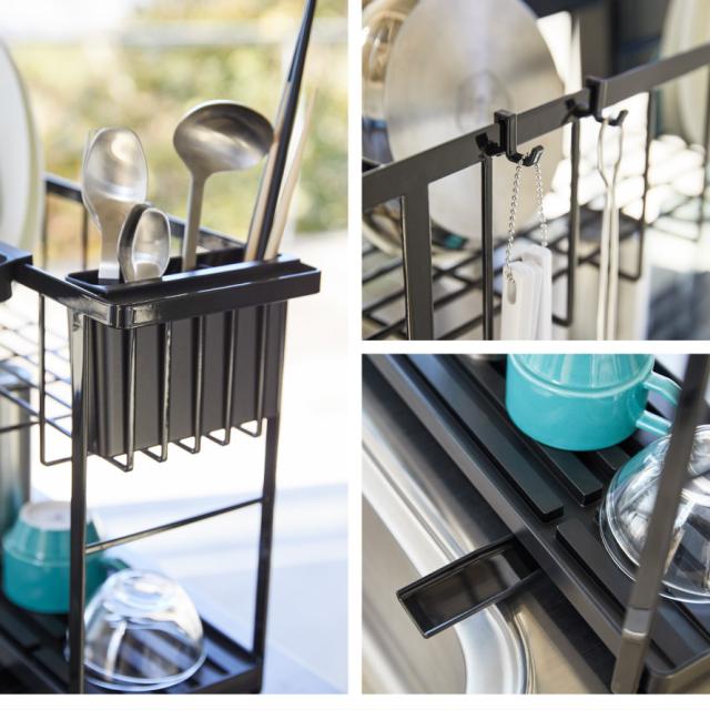 ■材質:本体/スチール(ユニクロメッキ+粉体塗装)、水切りトレー、カトラリーポケット、フック/ABS樹脂、水はけ/ポリプロピレン、水止栓/シリコーン