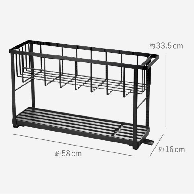 ■サイズ:本体/幅58×奥行16×高さ33.5cm、水切りトレー/幅55×奥行14.9×高さ3.5cm、カトラリートレー/幅36×奥行9.6×高さ2.6cm、カトラリーポケット/幅15×奥行5.5×高さ11cm
