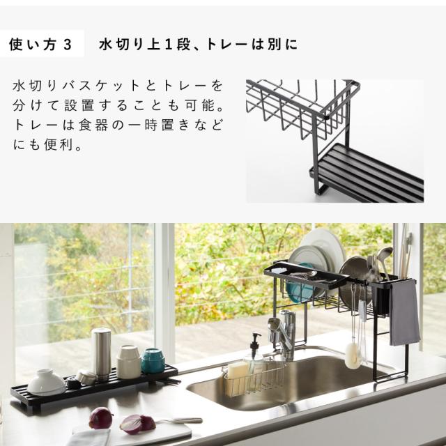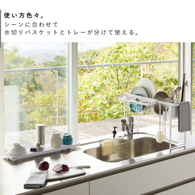 水切りバスケットとトレーを分けて設置することも可能。トレーは食器の一時置きなどにも便利。