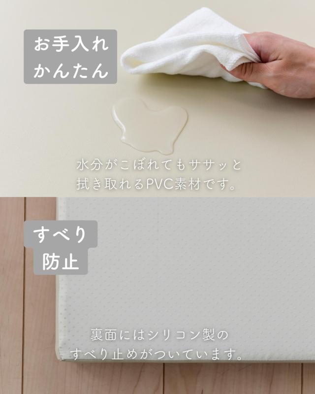 | 商品説明 | ※本ページは1枚販売です。商品説明の中で、複数枚を組み合わせたカットがございます。 ●お子さまのプレイマットに、奥さまのヨガ・ストレッチマットにぴったり! ●中材にはへたりにくいポリエチレン素材を5層に重ねて使用 ●厚さ5cmのマットでお子さまのケガを予防 ●衝撃を吸収し、階下への騒音を軽減 ●食品衛生法に基づくフタル酸エステル類の定量試験に合格した生地を使用 ●裏面にはズレを防ぐ滑り止め付 ※2023年1月よりアイボリー色追加となります。 |