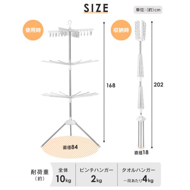 全体10kg、ピンチハンガー部2kg、タオルハンガー部1段あたり4kg