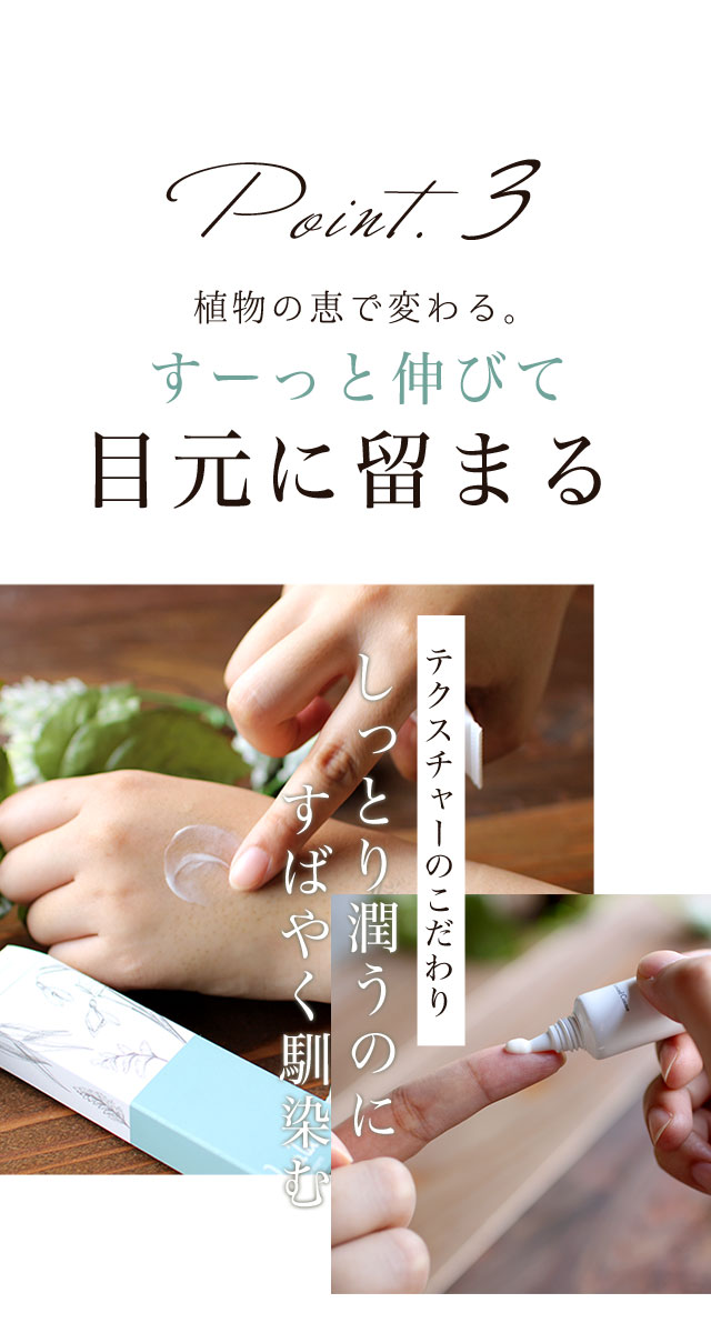夜寝る前にたっぷり付ければ、翌朝は目元ふっくら。