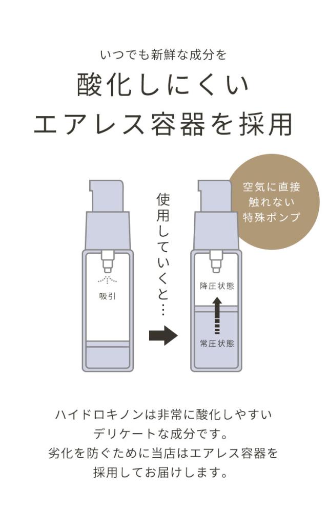 | 特徴 | 気になる悩みに集中ケアできるハイドロキノン高濃度のクリームが誕生。 夜のスキンケアの最後にちょこんと塗るだけ。まずは一ヶ月お試し下さい。 | ||