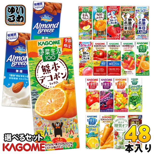 カゴメ 野菜ジュース 野菜生活 他 195ml 200ml 紙パック 選べる 48本 (24本×2) 季節限定 よりどり 熊本デコポン 冬のフルーツ 有田みかん アーモンドブリーズ 機能性表示食品