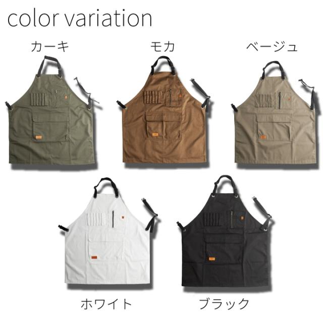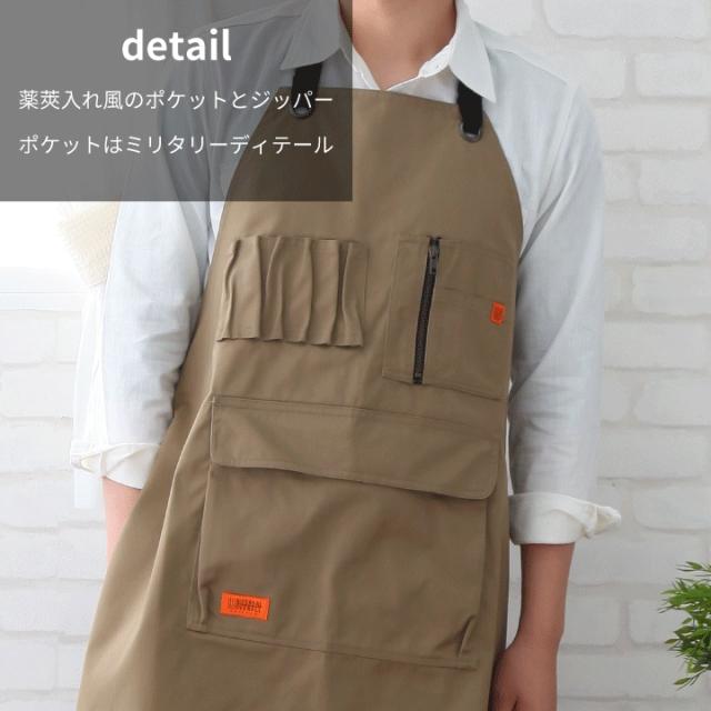 ミリタリーのディテールを持つ実用的な機能を持ったエプロン。