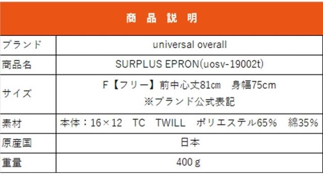 ユニバーサルオーバーオール サープラスエプロン UOSV-19002T 男女兼用
