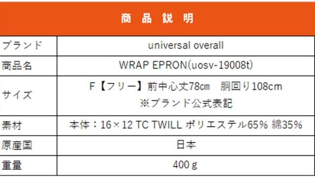 ユニバーサルオーバーオール ラップエプロン UOSV-19008T 男女兼用