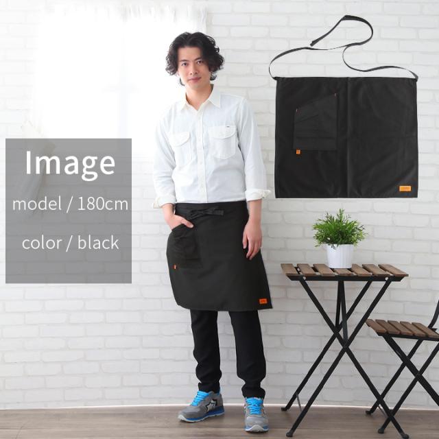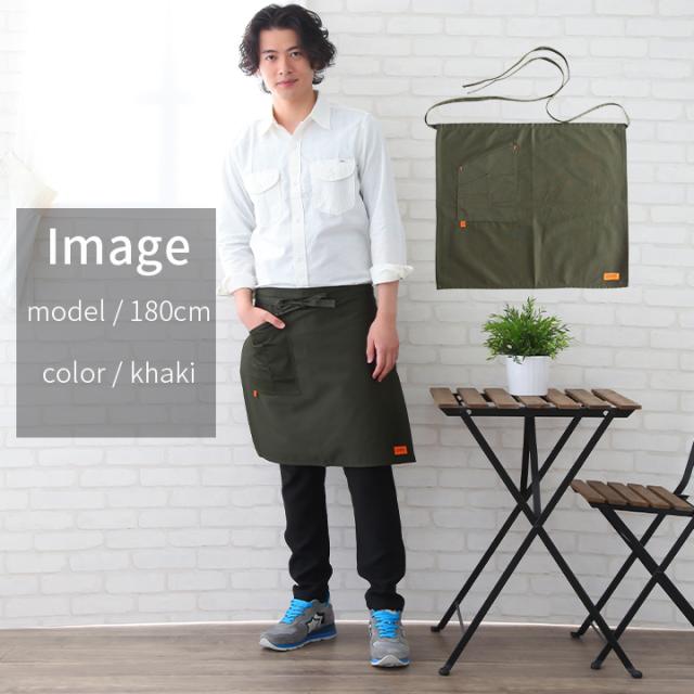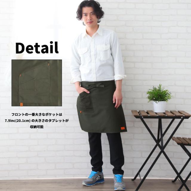 ベーシックなデザインでダブルポケットがアクセントのミドルエプロン