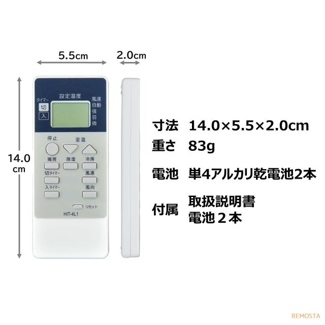 日立 エアコン リモコン 電池付き RAR-4L1 RAS-A22Z RAS-A25Z RAS-A28Z RAS-A40Z2 RAS-AC22A RAS-AC22Z RAS-AC25A など HITACHI 代用リモコン