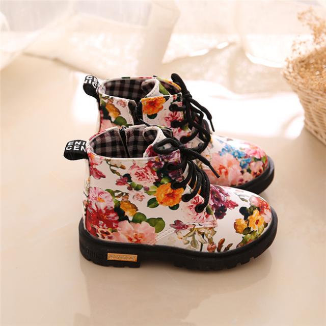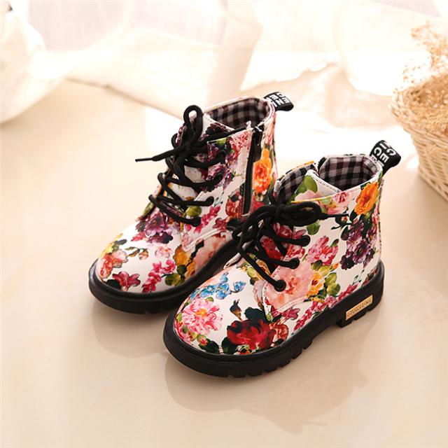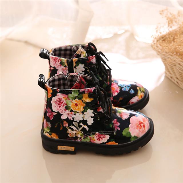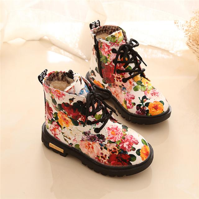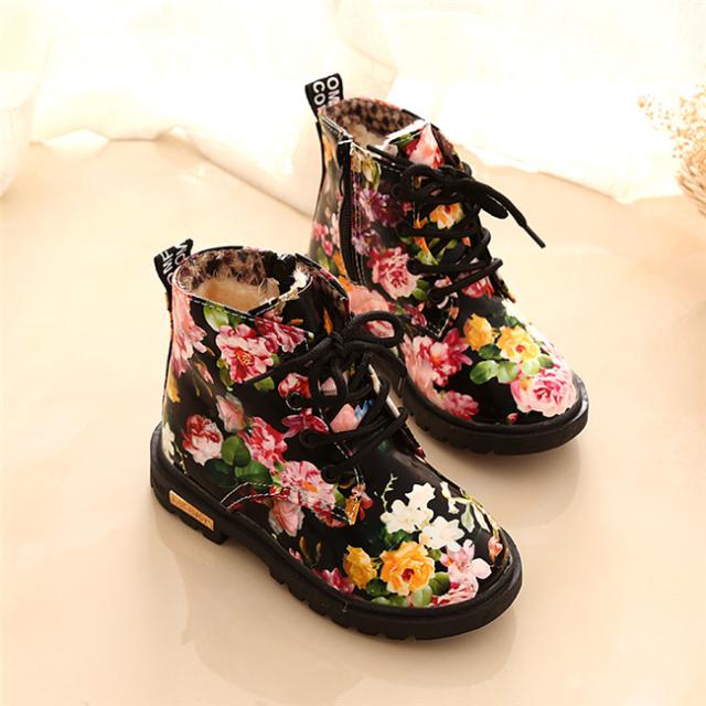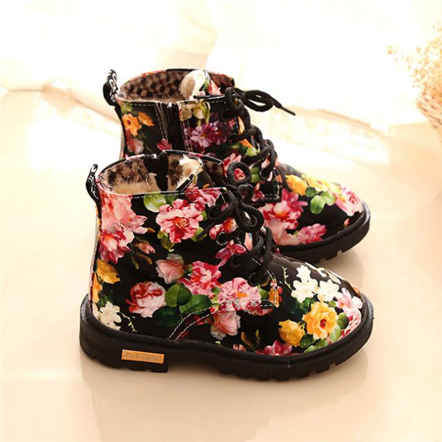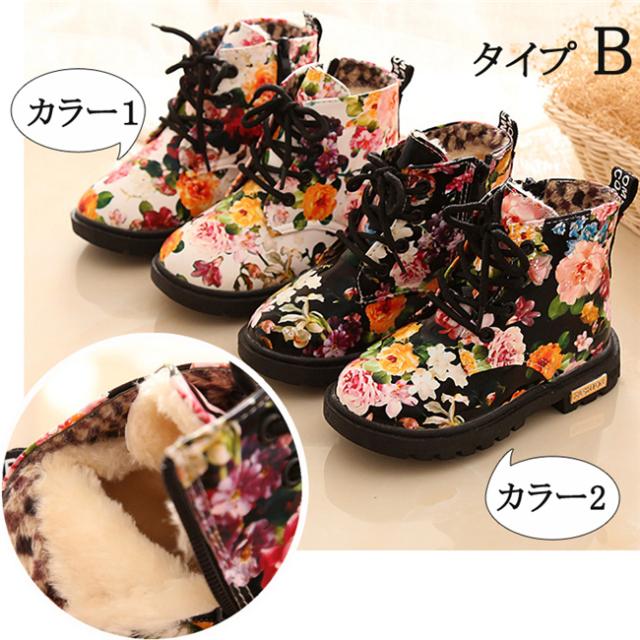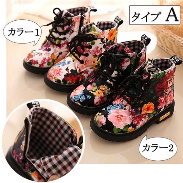 花柄秋冬靴 キッズ靴 マーチンブーツ キッズ ブーツ サイドゴア ショートブーツ ジュニア ブーツ 裏起毛 子供 男の子 女の子 キッズ 靴 ブーツ 13.5-18.5cm