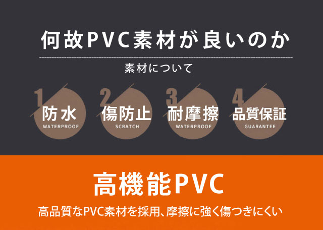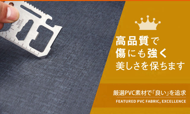 防水・軽量・傷に強い高品質PVC素材を使用。