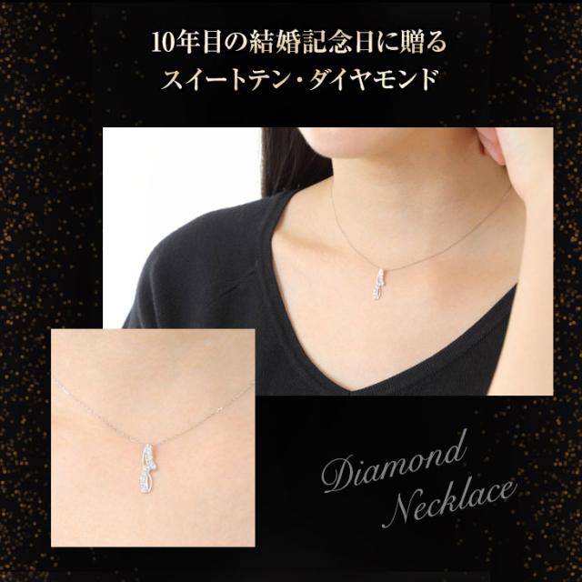 【厳選された天然ダイヤモンド】鑑定士が輝き・テリの良いダイヤを厳選してお届け。上質でシンプルなプラチナダイヤモンドネックレス。スイートテンダイヤモンドは、結婚10周年の記念に贈るアニバーサリージュエリーとしても人気です。