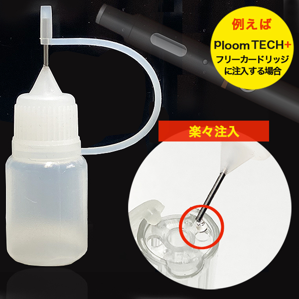 ペン型やタバコ型などの、アトマイザータンク部分が細い電子タバコへのリキッド注入に便利です。