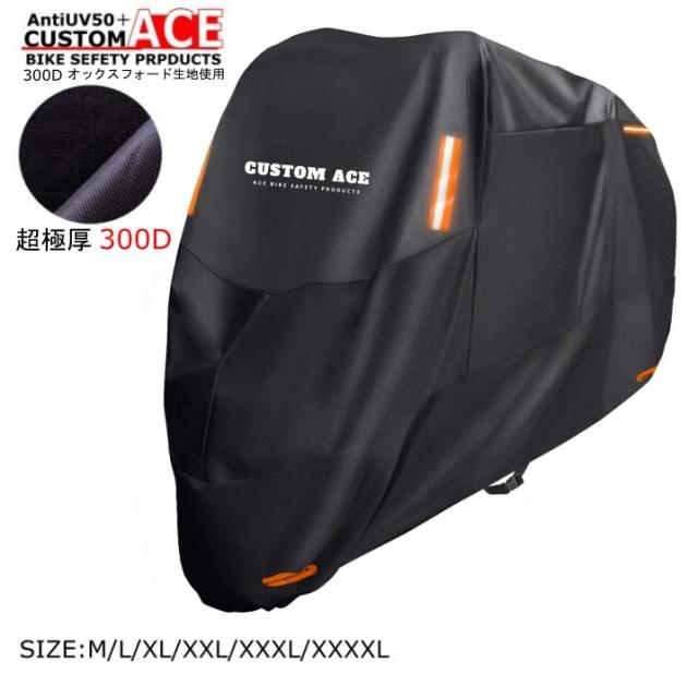 《CUSTOM ACE》【超厚手】【300Dオックスフォード】【オリジナル】M〜2XL メーカー保証付き バイクカバー ブラック レインカバー 防水カバー 防水 防盗 UVカット 原付 スクーター 飛ばない 丈夫 鍵穴付き
