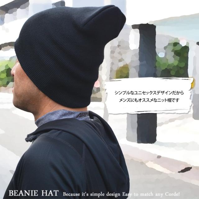 シンプルなデザインだからどんなコーデにもあわせやすいニット帽。