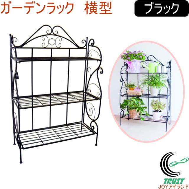 ガーデンラック 横型 ブラック (GD-1901) 送料無料 園芸 フラワースタンド ガーデニング ガーデン ラック 3段 スチール製 鉢置き