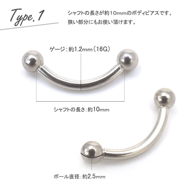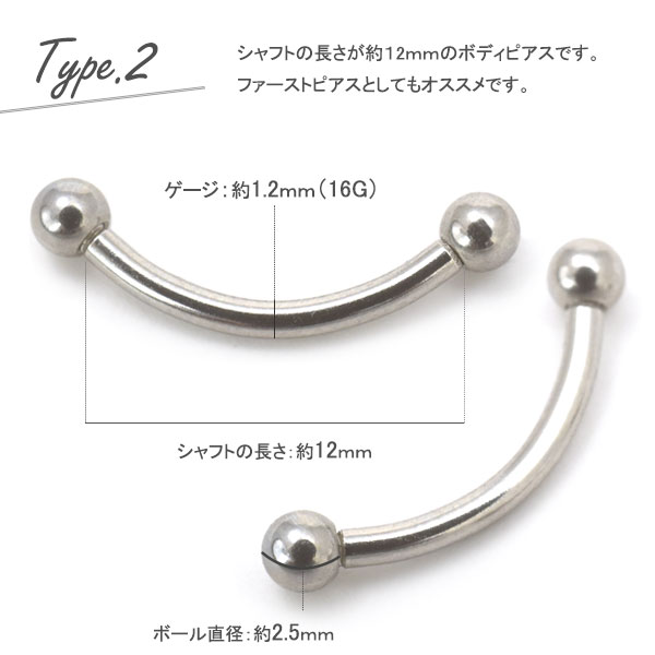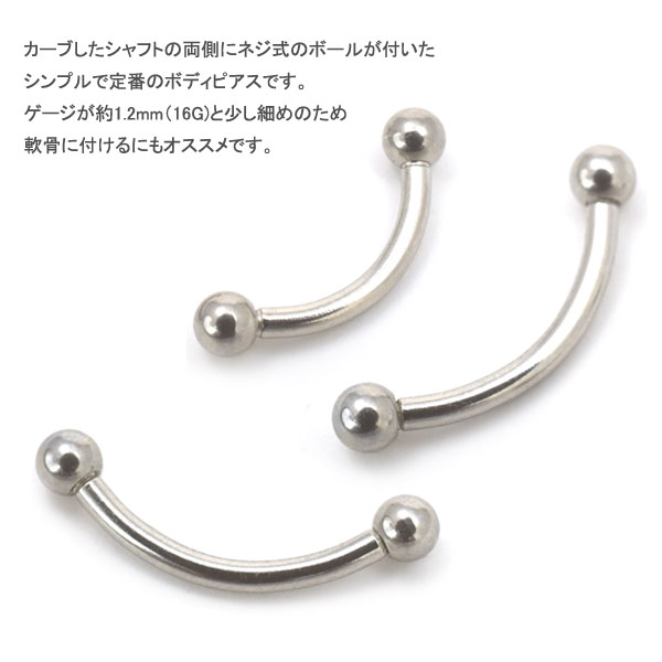 スカーブバーベル型 ボディピアス 10mm/12mm