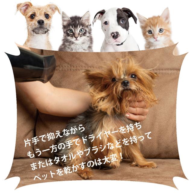 この商品だと両手が自由なのでラクラクペットを乾かすことができます。