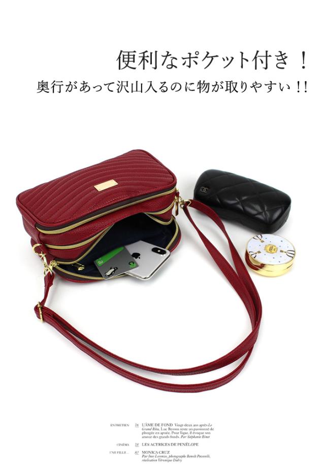 - ちょうどよく財布、携帯、化粧バックなど入るので買って良かったです