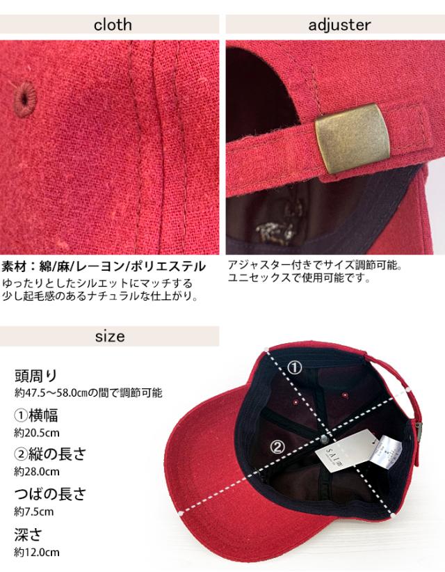 ■サイズ:[頭周り](約)47.5〜58.0cmの間で調節可能、[深さ](約)12.0cm、[つば長さ](約)7.5cm