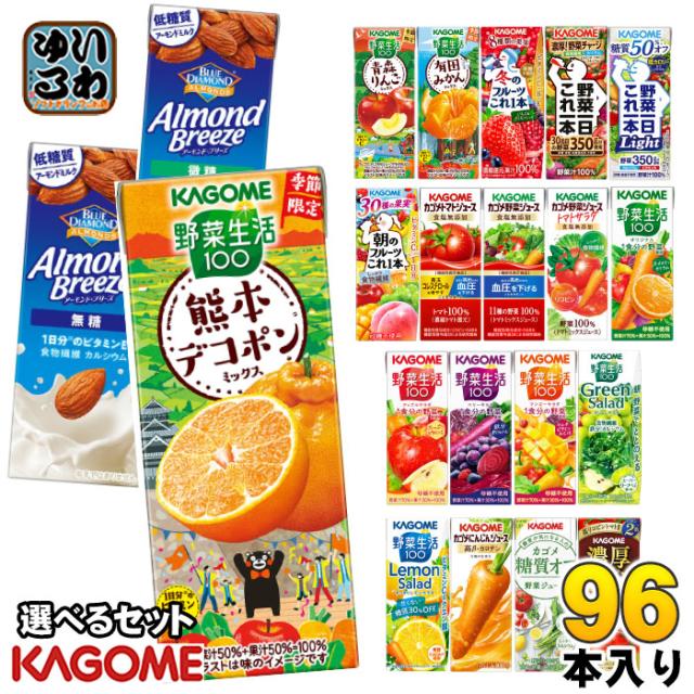 カゴメ 野菜ジュース 野菜生活 他 195ml 200ml 紙パック 選べる 96本 (24本×4) 季節限定 よりどり 熊本デコポン 冬のフルーツ 有田みかん アーモンドブリーズ 機能性表示食品