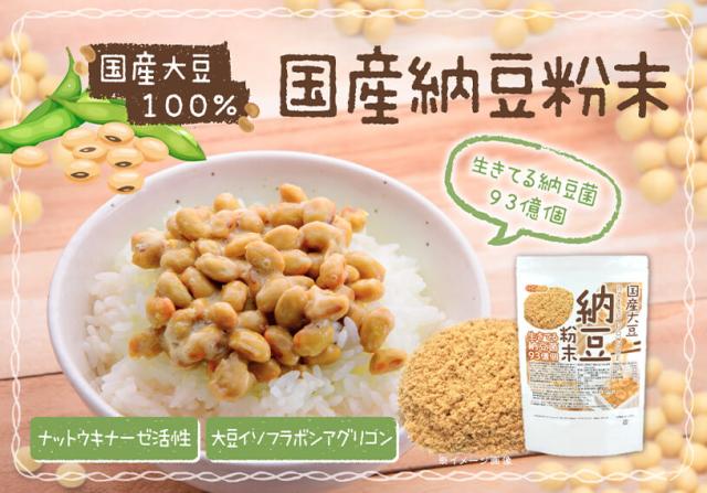 - 粉末納豆を食べ始めてから毎日快腸で便秘知らずです。今まで他社の商品を利用していましたが、こちらの商品の方が国産大豆を使用しているのに量も多くお値段も安いので長く続けられると思います。またリピしたいです