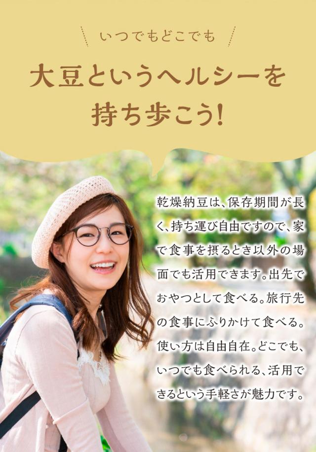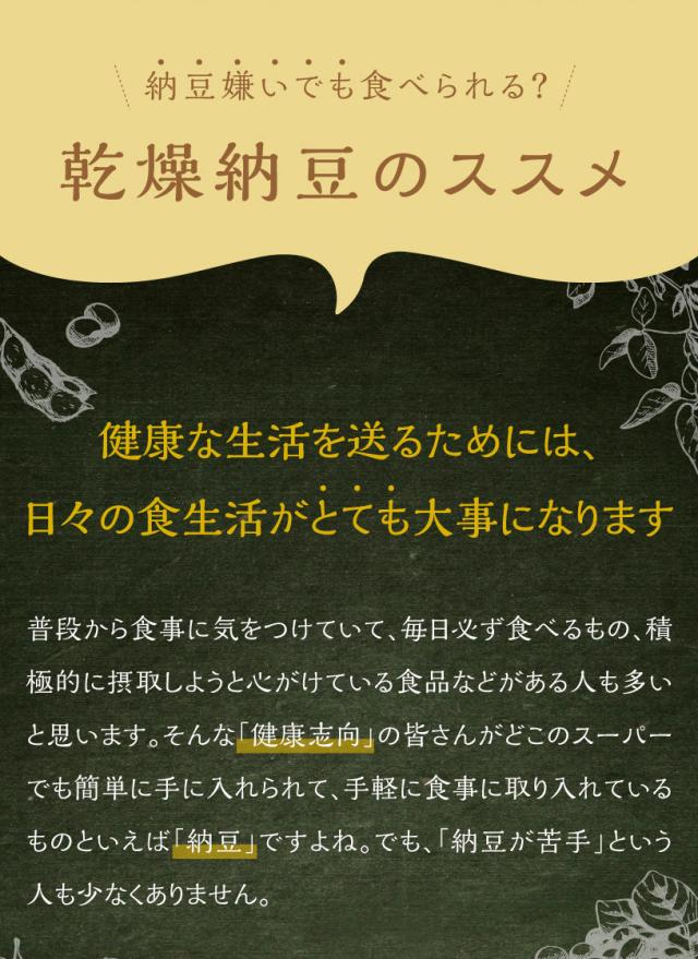 日本の伝統的健康食品、国産大豆を100%使用して作られた老舗納豆屋の納豆を「フリーズドライ製法」によって加工しています。加熱工程もなく、余計なものは一切入れておりません。