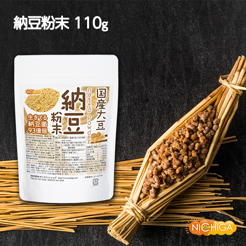国産納豆 粉末 110g 【メール便専用品】【送料無料】 国産大豆100%使用 natto powder 生きている納豆菌93億個・ナットウキナーゼ活性・大豆イソフラボンアグリコン 含有 粉なっとう 納豆パウダー [04] NICHIGA(ニチガ)