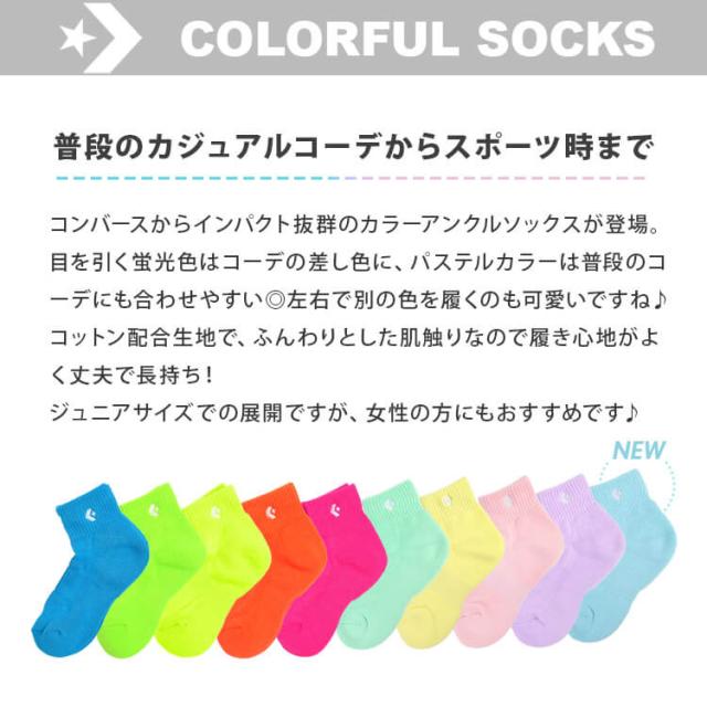 ソックス 靴下 CONVERSE コンバース レディース キッズ スポーツ ソックス ショート クルー ソックス 派手 カラフル バスケットボール ミニバス ネオンカラー パステルカラー くつした くつ下 スニーカー クラブ 部活 通学 ジュニア 小学生 運動会 目立つ 中学生 高校生