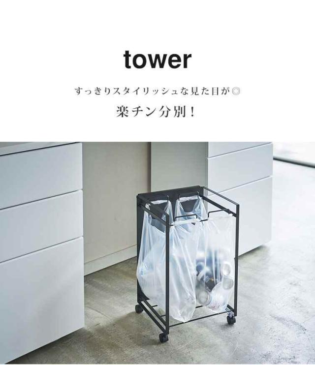ゴミ箱 分別 スリム 目隠し tower タワー 山崎実業 おしゃれ シンプル 2分別 スタイリッシュ ダストワゴン ごみ箱 ビン 瓶 缶 カン ペットボトル キャスター付き キッチン 台所 レジ袋 白 黒 スチール ホワイト ブラック 目隠しダストワゴン シンプル 4330 4331 送料無料