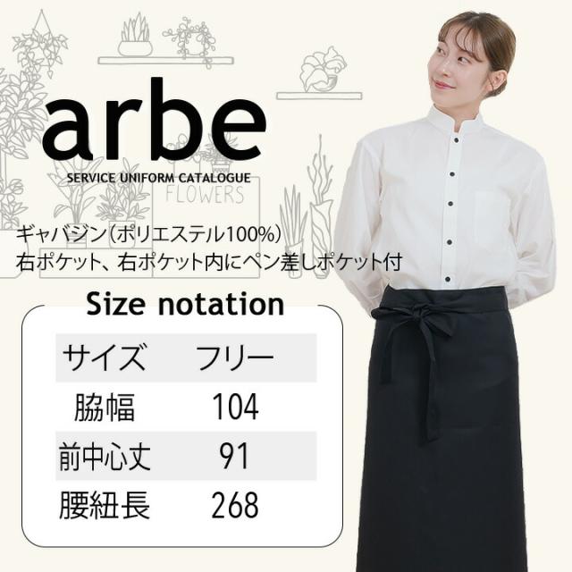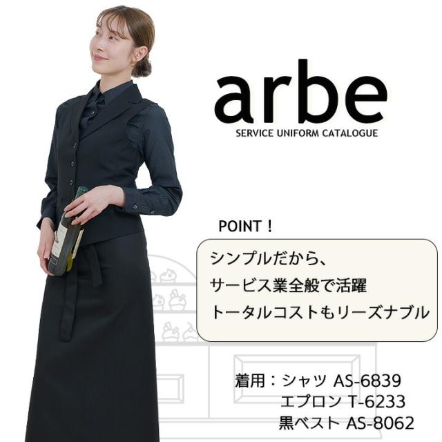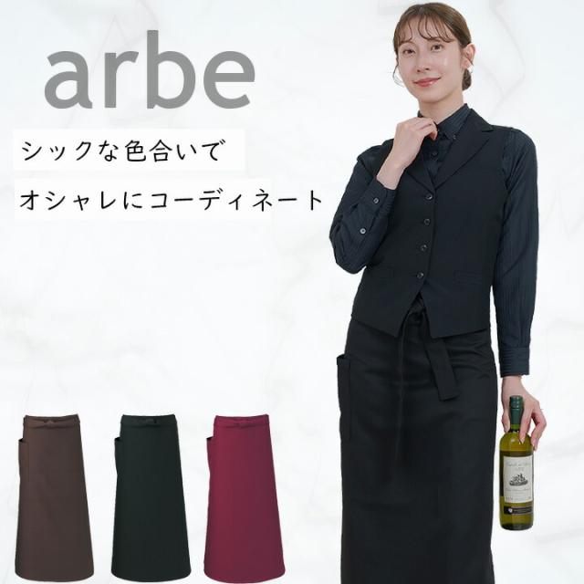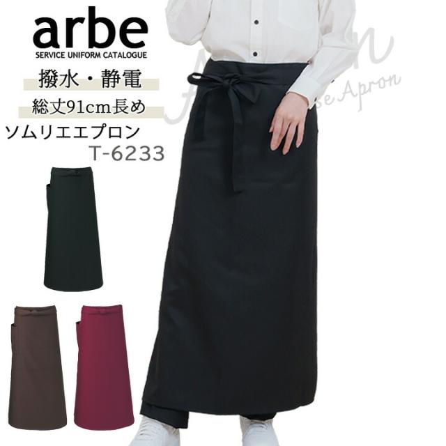 ソムリエエプロン arbe アルベ T-6233 男女兼用 カフェ 飲食 制服 エプロン ロング 撥水 おしゃれ エプロン 防シワ 制電加工 送料無料 ブラック ワイン