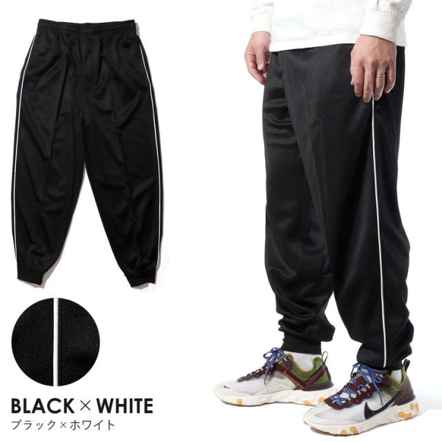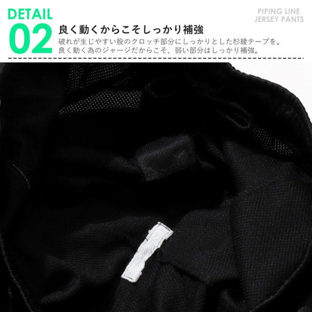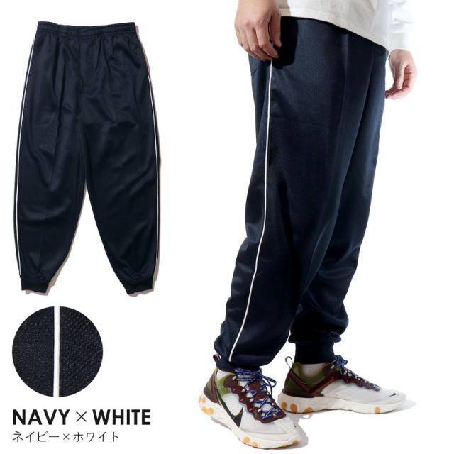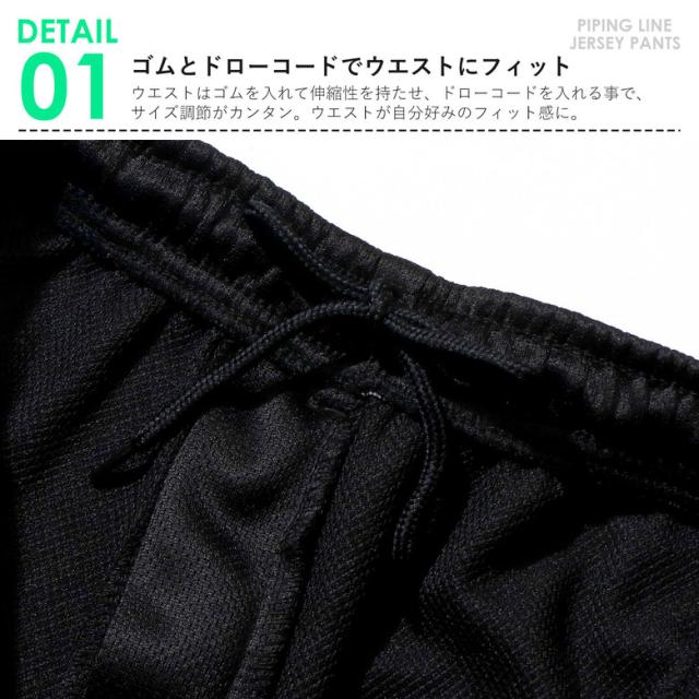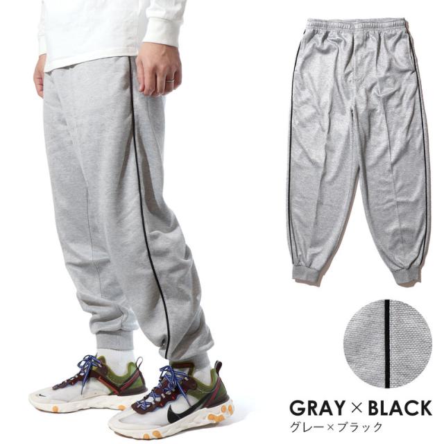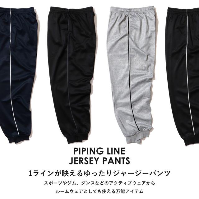 パイピングラインが映えるゆったりジャージーパンツ。 涼しい素材で春から初秋にかけてのスポーツやジム、ダンスなどのアクティブウェアからルームウェアとしても使える万能アイテム。 |