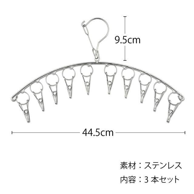 ピンチ付 ステンレスハンガー ソックスハンガー 3本セット 洗濯バサミ10個付 クリップハンガー 洗濯 物干し 下着 ブラジャー 収納 新生活 socks-hg