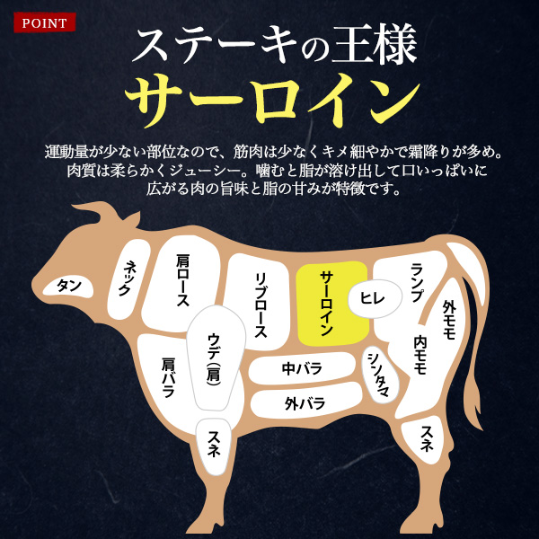 縦横無尽に入った霜降りが自慢のステーキの王様「サーロイン」