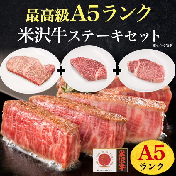 最高級A5ランク 米沢牛ステーキ肉3点セット 480g