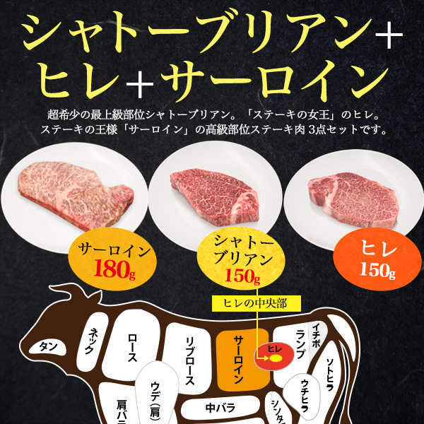 (シャトーブリアン150g+ヒレ150g+サーロイン180g)