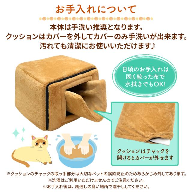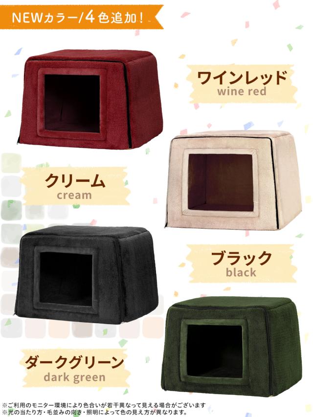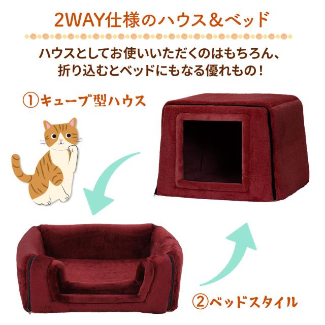 【ペットに合わせられる2WAYタイプ】ベッドにもハウスにもなる2WAY仕様のキューブ型ペットベッドです。とてもおしゃれな外観のキューブ型はどんなお部屋にもマッチします。お部屋の角にもきっちり置くことができるので、隅っこが好きな猫ちゃん、ワンちゃんも大喜び!隠れるのが好きなワンちゃん、猫ちゃんにはハウス型で、ベッドタイプが好きな子たちには折りたたんでベッドにすることも可能!