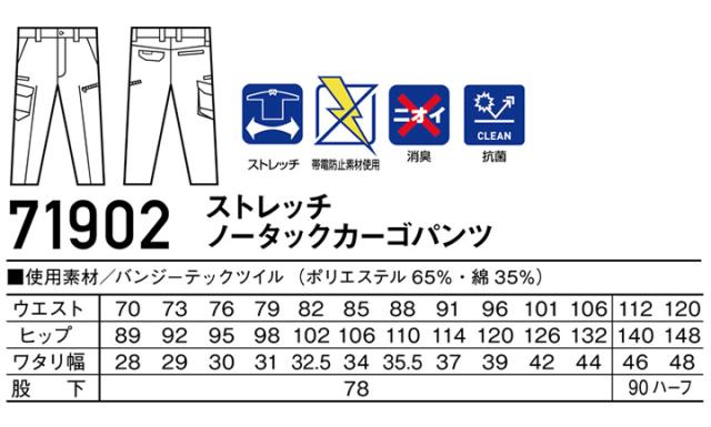 作業着 ストレッチノータック カーゴパンツ 71902 Z-DRAGON ズボン 消臭 抗菌 帯電防止 秋冬 作業服 作業着 自重堂