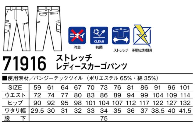 作業着 レディース ストレッチ レディースカーゴパンツ Z-DRAGON 71916 秋冬 ズボン 女性用 消臭 抗菌 帯電防止 作業服 作業着 自重堂