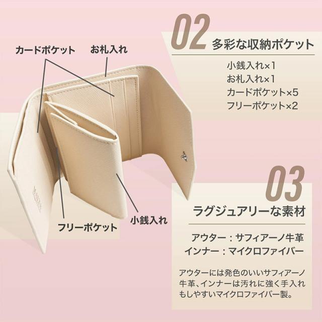 【限定300円OFFクーポン】【3,380円→3,080円】MALTA 牛革三つ折り財布 ボックス型小銭入れ レディースミニ財布 サフィアーノレザー 牛革 財布 小さい財布 コンパクト