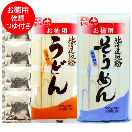 随時発送中 お徳用 うどん 乾麺 送料無料 そうめん 北海道地粉 干し うどん 1袋(500g)・干し 素麺 1袋(500g) お試し 昆布つゆ 付き ポイント消化 送料無料 麺類 饂飩 そーめん 1000 円 ポッキリ