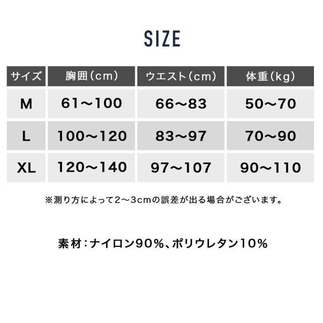 M:胸囲61-100cm ウエスト66-83cm 体重50-70kg